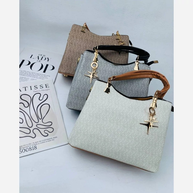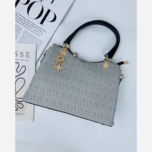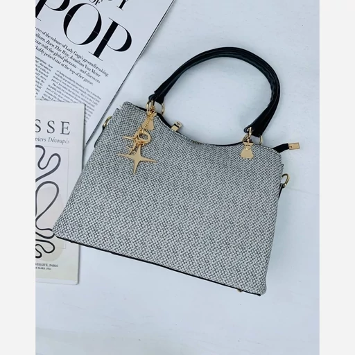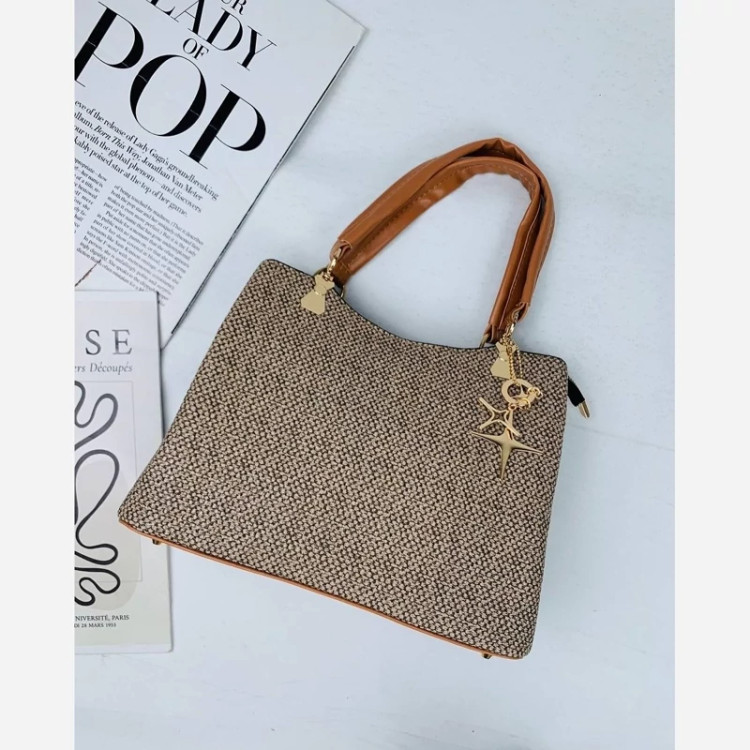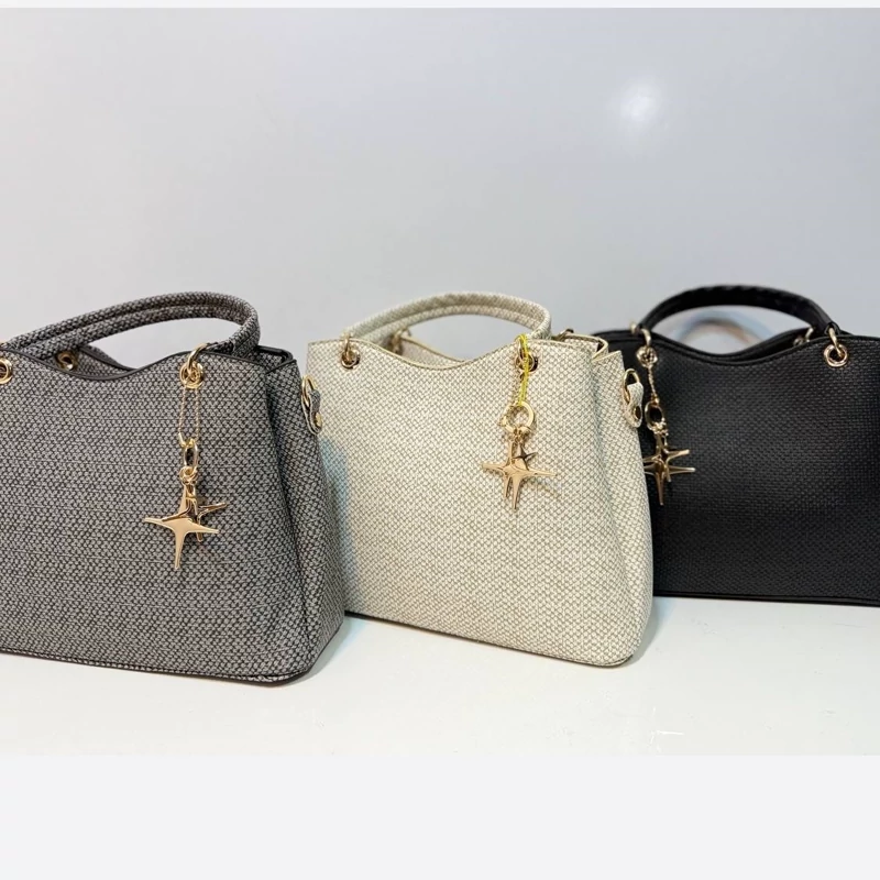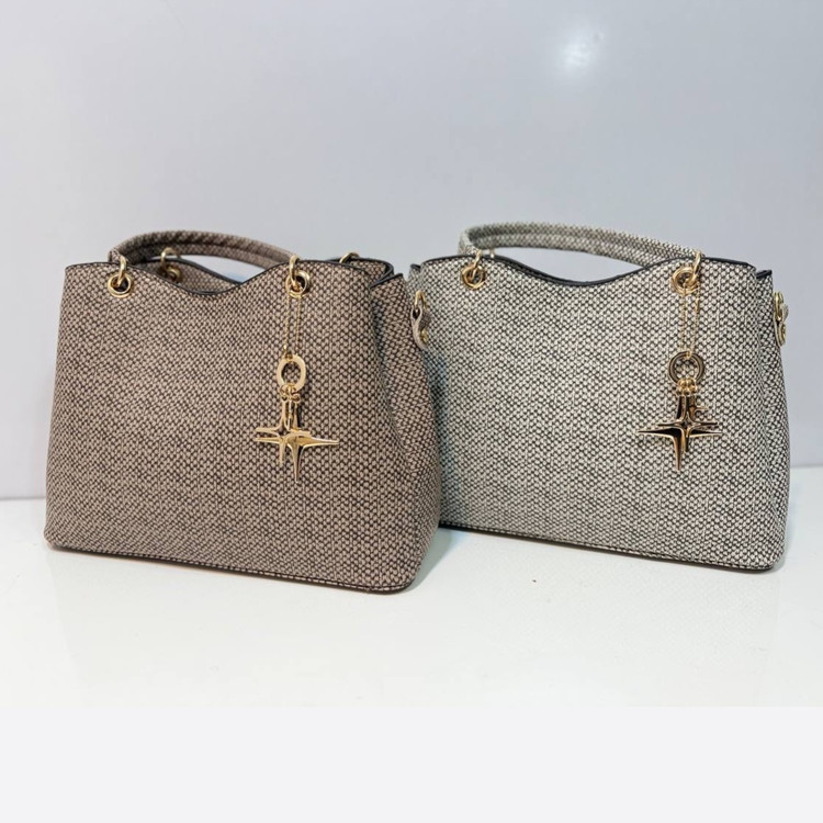 کیف دستی دوشی زنانه سه خونه مدل آویز رینگ دار طرح کنف