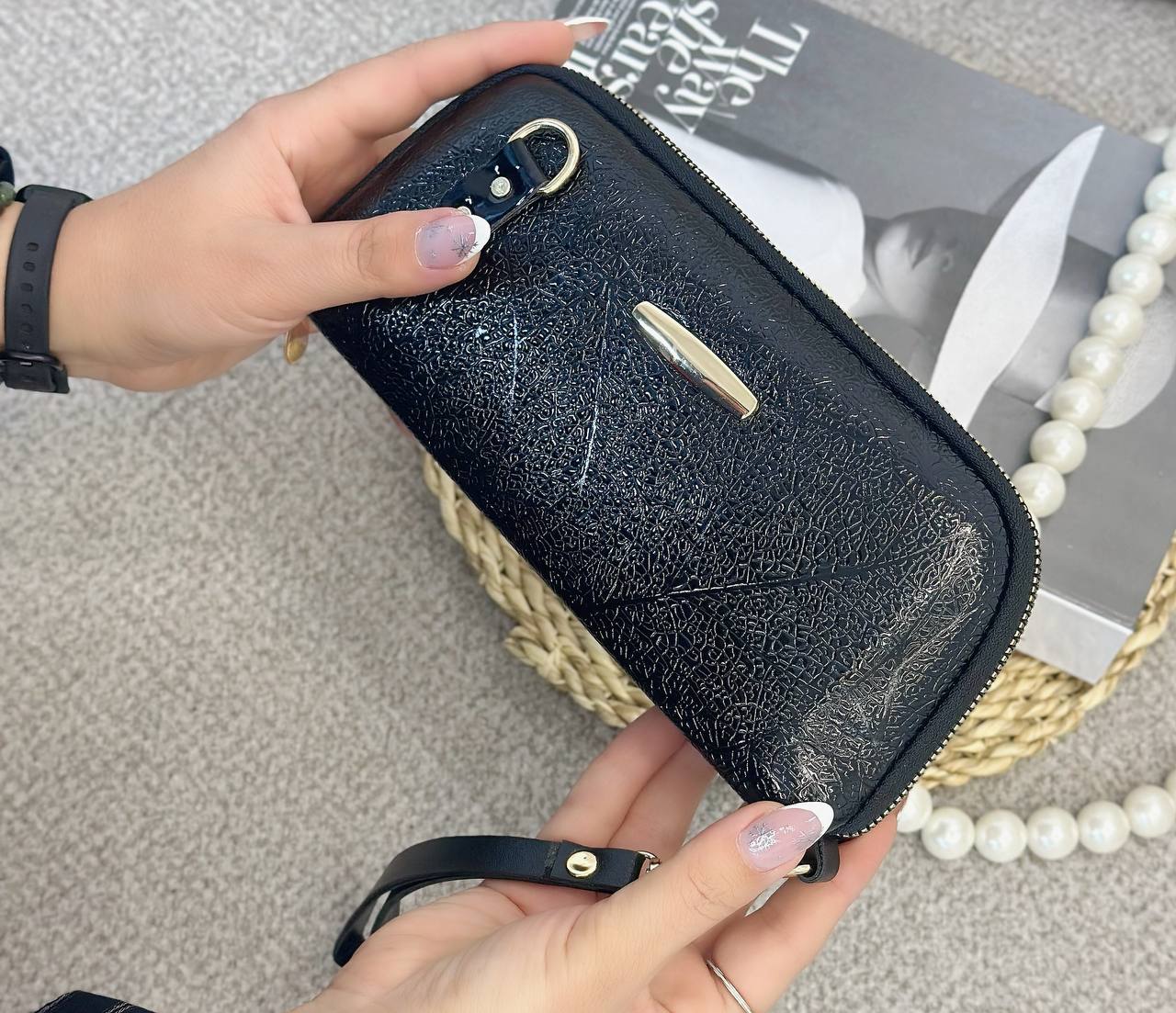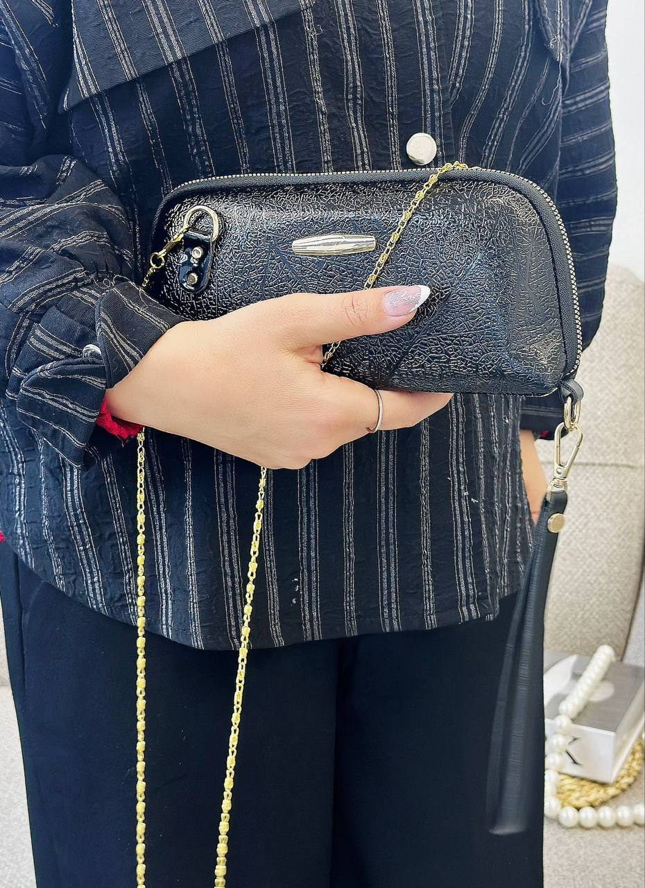 جزئیات: بازو بست زیپی / آسترچرمی درجه یک/ جنس ورنی/ داخل جیب / جاکارت دار/ بند مچی و بند بلند دوشی زنجیری دارد
