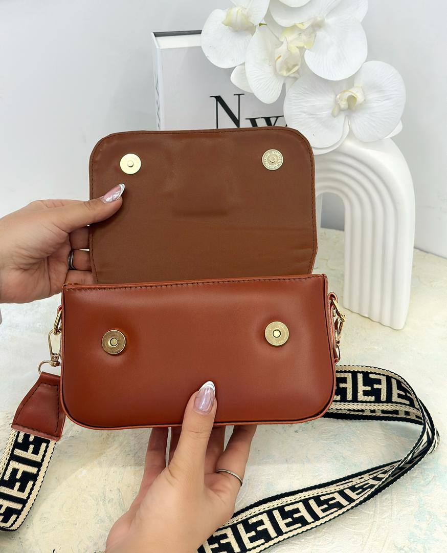 جزئیات: جنس صابونی درجه یک/بندپهن اسپرتی چاپ فندی/بازوبست کیف هم دکمه ای و هم زیپی/یراق طلایی/آستر خارجی/رنگبندی جذاب