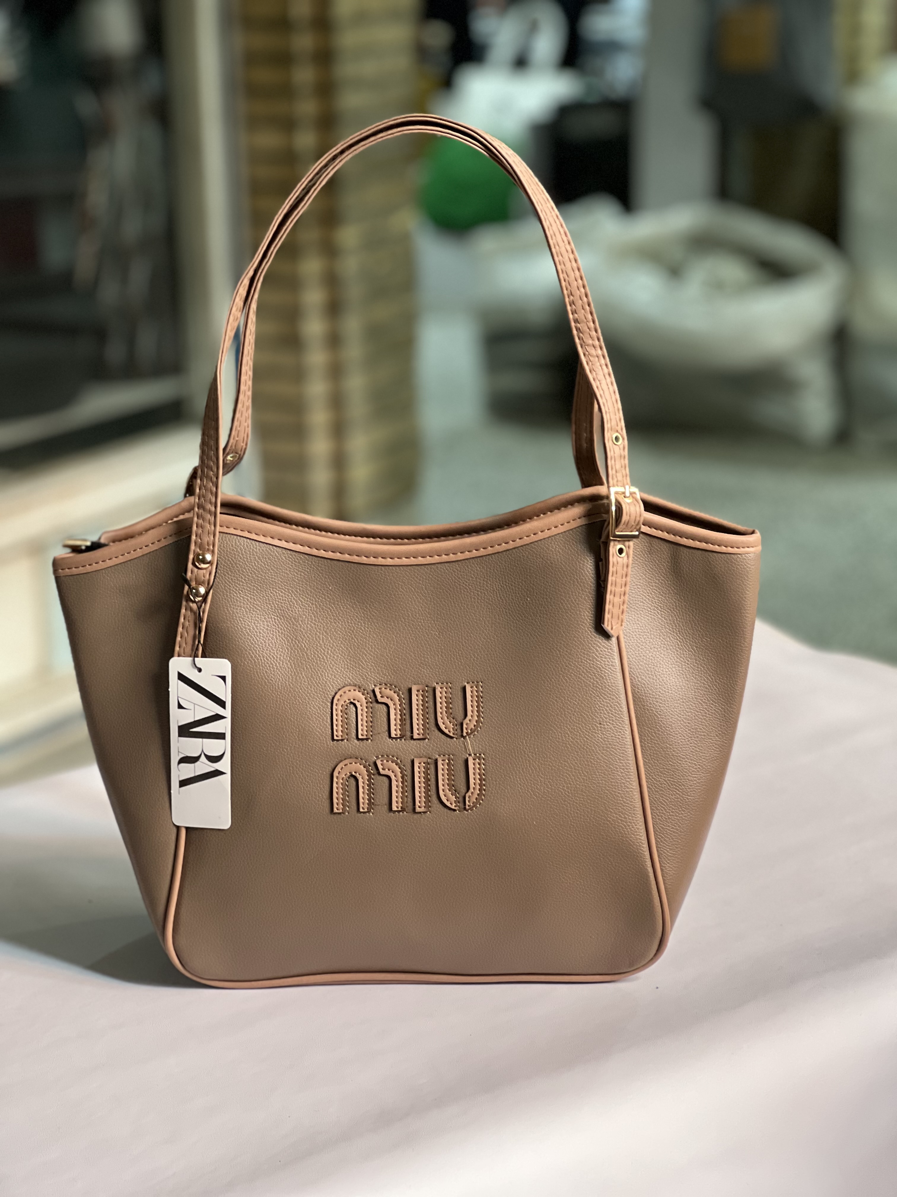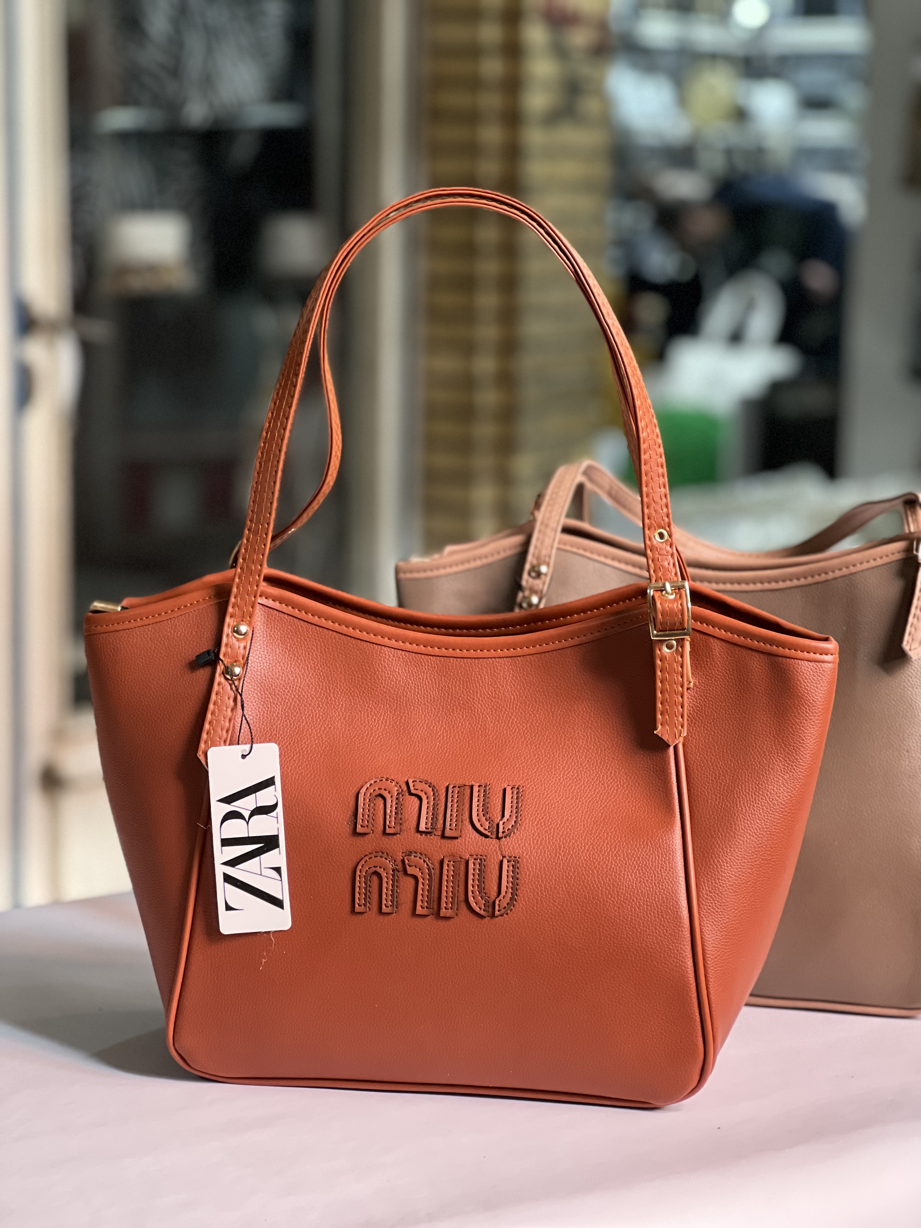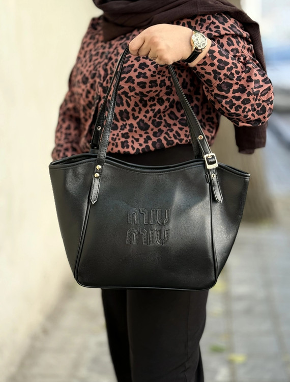 بند دستی و دوشی/بازو بست زیپی/داخل جیب کوچک زیپی دارد/آستر کشی دارد/گلدوزی میو میو جلوی کار