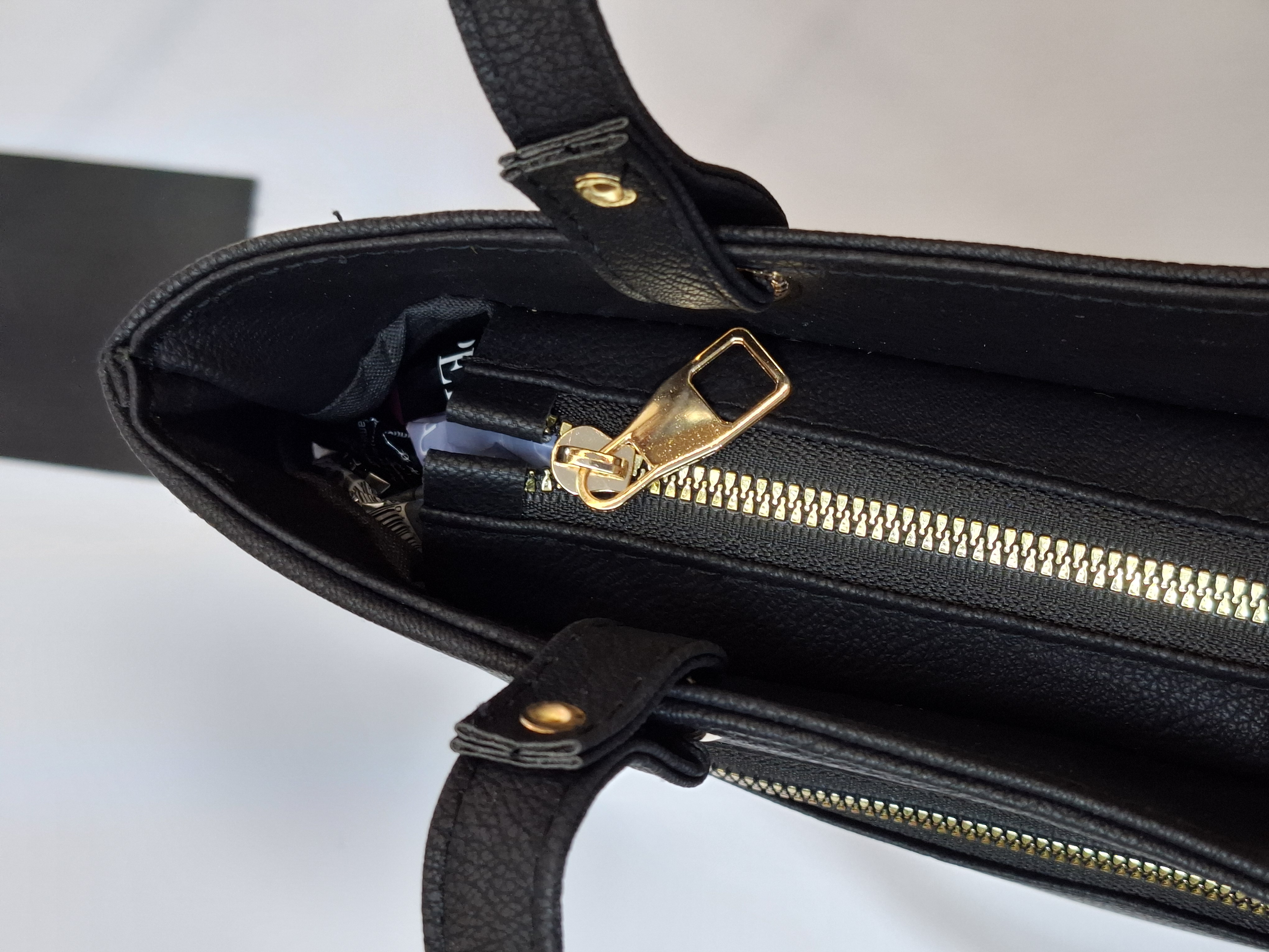 آسترخارجی ،سرزیپ طلایی،زیپ پشت کیف،بند دستی بلند و نیمه دوشی
